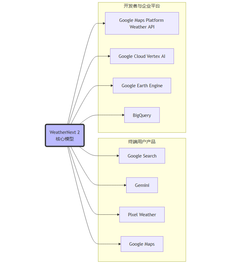 WeatherNext 2的能力通过不同产品和平台对外输出,形成了一个完整的产品矩阵。
