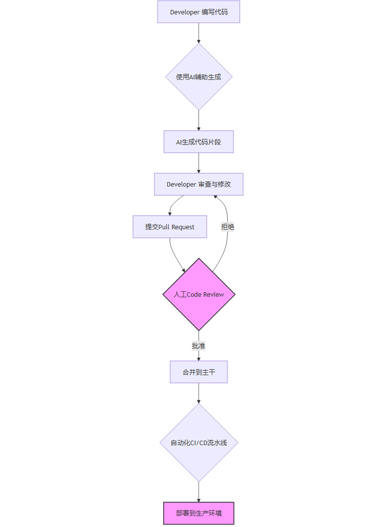 严禁AI代码自动合并。所有由AI生成的代码,必须经过至少一名开发人员的严格审查(Code Review),确认无误后方可手动合并到主干分支。
