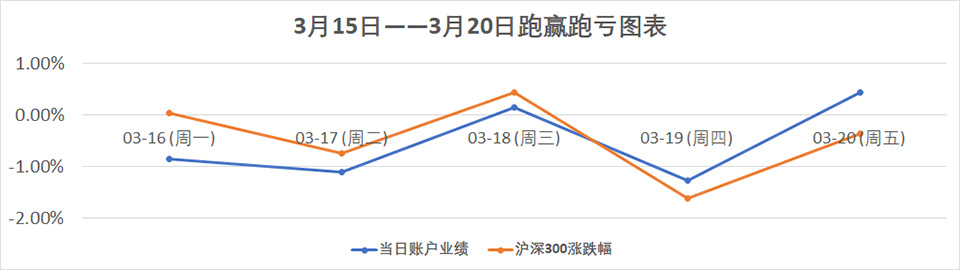 正是在此背景下,雪球系统交出了一份看似矛盾却极具深意的答卷。从账面上看,-2.62%的周度收益率,略微跑输-2.24%的沪深300指数,这是自系统运行以来首次录得显著回撤。然而,如果我们穿透这层冰冷的数字,会发现其背后隐藏着一次堪称典范的、以“断臂求生”为核心的战略性操作。系统在本周后半段,以雷霆之势执行了大规模减仓,将仓位从接近满仓的100%断然降至51%,释放了近半壁江山的现金。这一操作的直接战果,便是在周五(3月20日)市场继续下探-0.35%的绝境中,账户净值竟实现了+0.44%的逆势增长——这是一次极限防守下的完美反击。