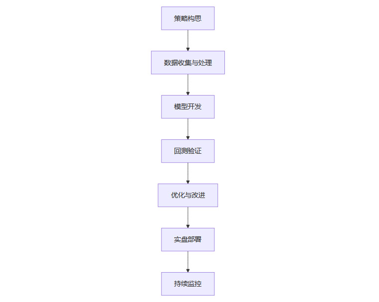 量化投资的流程高度系统化,涵盖从策略构思到实盘部署的全链条。以下以Mermaid流程图形式展示量化投资的主要流程: