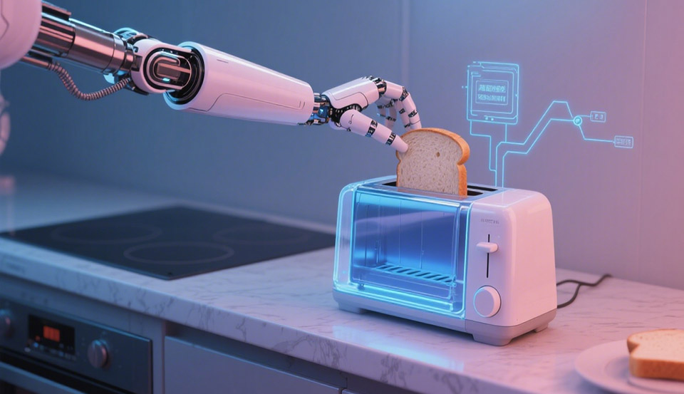 意图推断 它推断出这两个物体同时出现,很可能意味着一个“烤面包”的任务意图。