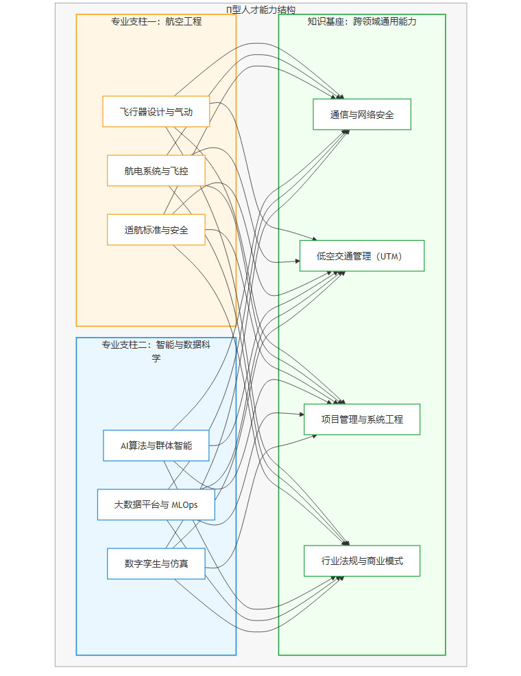 低空经济的本质,是航空工程体系与新一代数字信息技术的系统性融合。这一特性决定了其从业者必须具备跨界整合的复合能力。一个合格的低空经济人才,其知识结构不再是传统的“T”型,而更趋近于拥有两个或多个深厚专业支柱的“Π”型人才。
