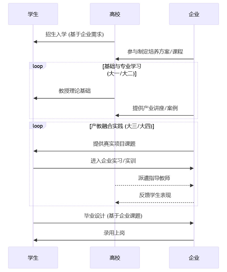 下图展示了一个深度产教融合模式下的人才培养流程。
