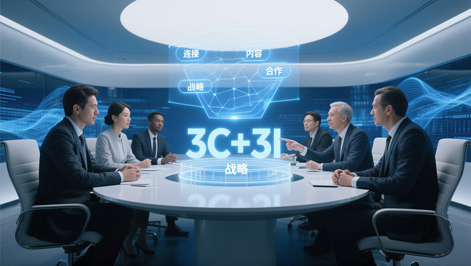![战略框架示意图:3C环抱3I,中心为AI驱动引擎]