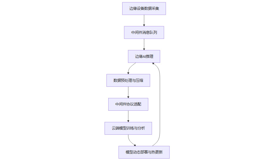 边缘节点负责实时数据采集、预处理和初步AI推理,云端负责大规模模型训练和复杂分析。中间件实现高效协同,提升系统整体性能。