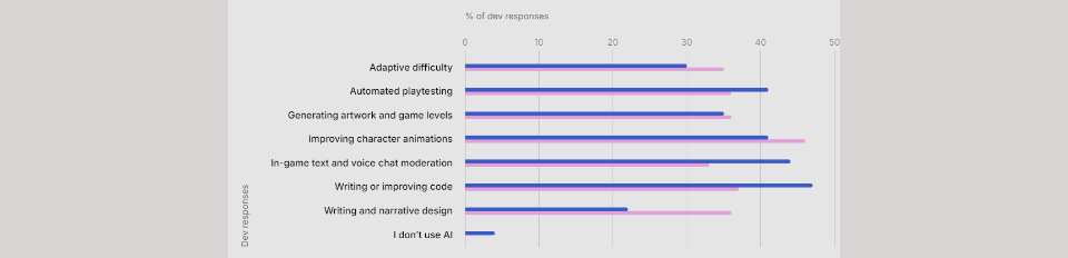 尽管初期开发者对AI持谨慎态度,但如今79%的从业者已积极拥抱AI。这一转变主要归因于AI技术的不断进步和市场竞争的加剧。AI不仅提高了开发效率,还为玩家带来了更加丰富和动态的游戏体验。