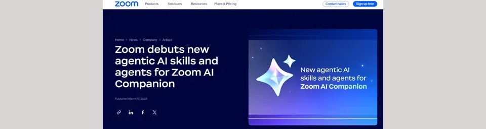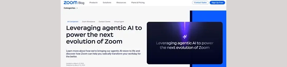 今天凌晨,全球视频会议领导者Zoom在官网宣布,推出一系列AI Agent产品,全面增强其平台功能,标志着Zoom正式进入智能体自动化时代。此次更新涵盖了Zoom Meetings、Zoom Phone、Zoom Team Chat、Zoom Docs、Zoom Contact Center、Zoom Workplace等多个产品。