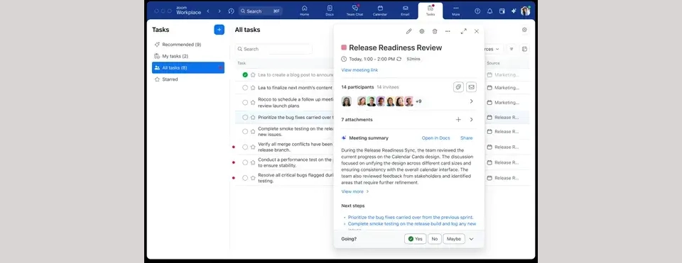 Zoom Task Function(预计3月底推出):自动检测会议总结、聊天和邮件中的行动项目,并将其整合到一个中央任务管理库中。